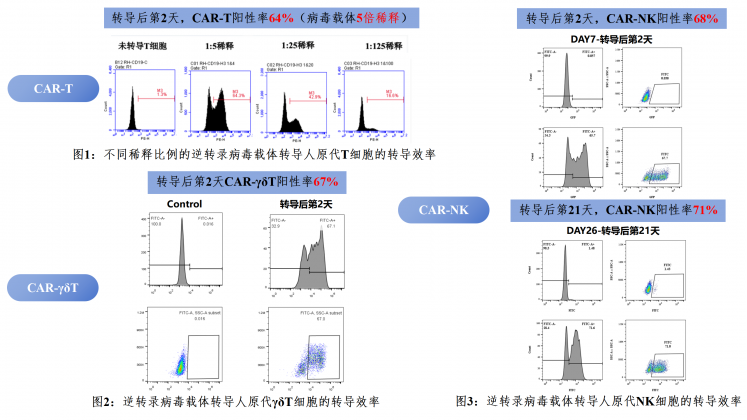 - For NK cells with lentivirus, the transduction efficiency can reach more than 50%, and the activity rate is higher than 95%